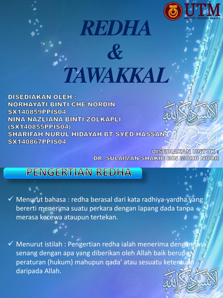 Bicara Hidayah Redha Dan Pasrah Redha Berasal Dari Kata Facebook