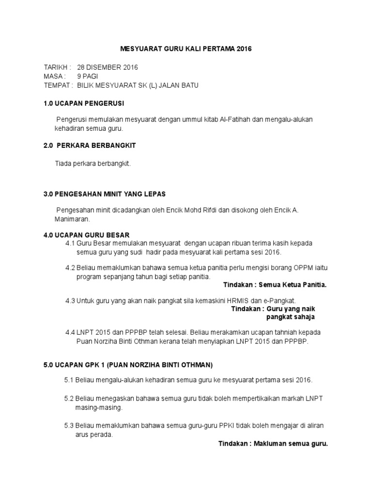 Minit Mesyuarat Pibg Sk Bawang Tian 2016 Pages 1 8 Text Version Fliphtml5