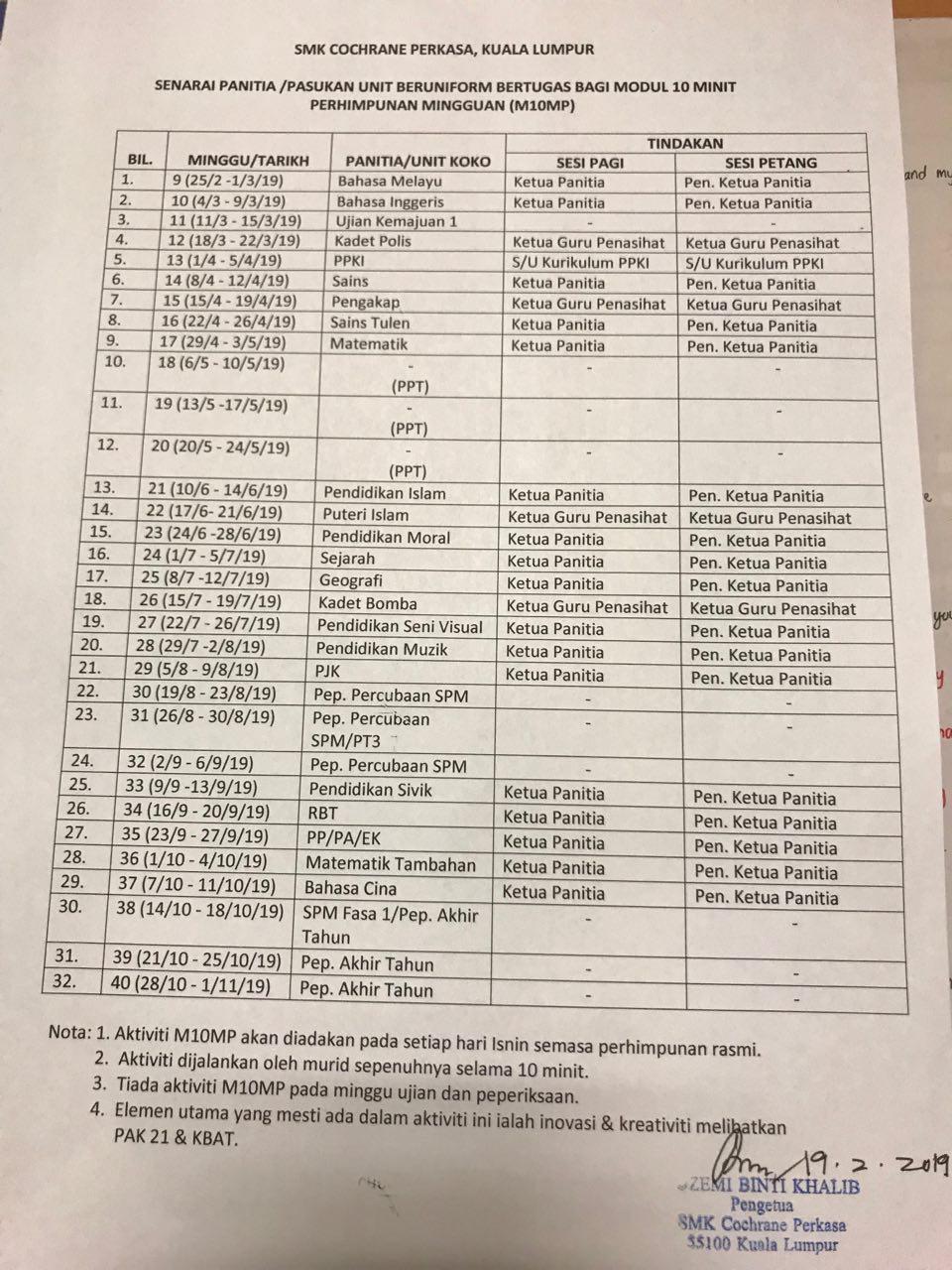 Laman Web Rasmi Smk Cochrane Perkasa Jadual Modul 10 Minit Perhipunan 2019