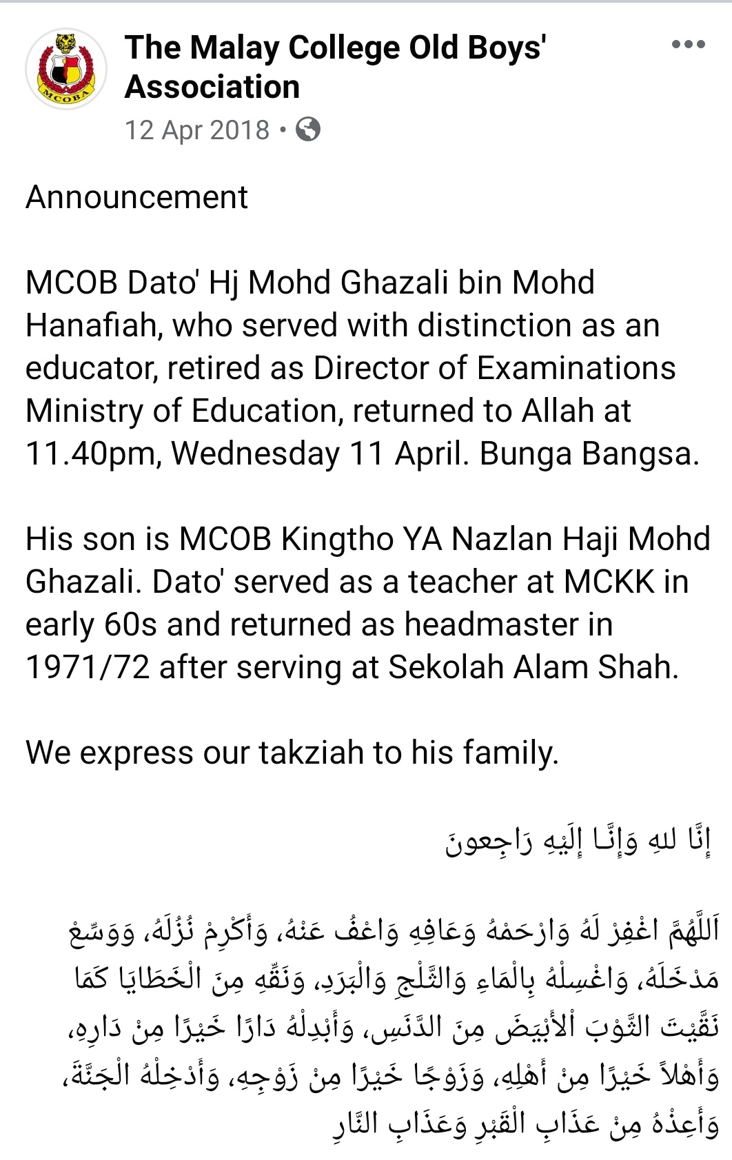 Aidila Razak On Twitter His Father Was Dato Mohd Ghazali Hanafiah Former Mckk Headmaster Who Passed Away Two Years Ago The Judge Is Mentioned In The Notice By Macoba Here Https T Co 8fc6ti74wn Https T Co Hf1ux3rnr9