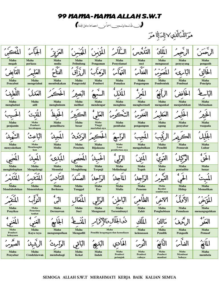 99 Nama Nama Allah S W T