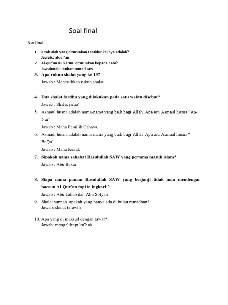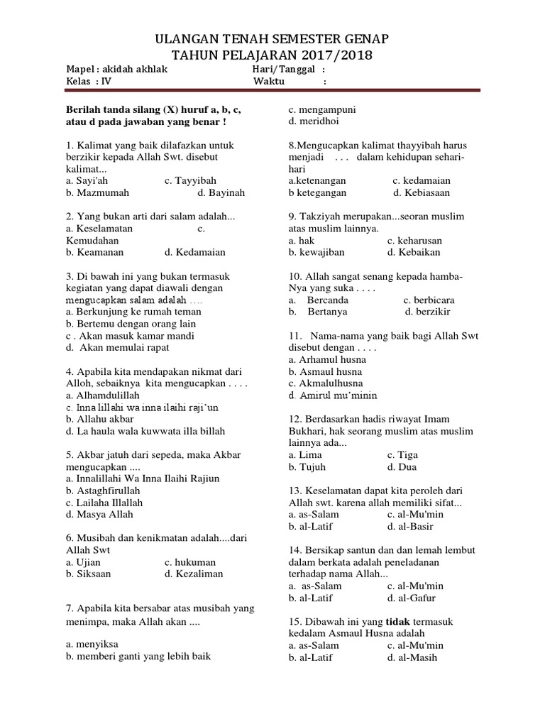 45 Contoh Soal Uas Pai Kelas 7 Smp Mts Semester Ganjil
