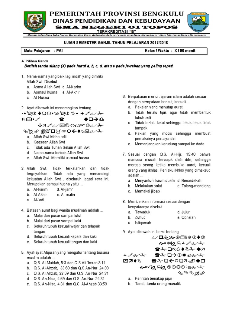 45 Contoh Soal Uas Pai Kelas 7 Smp Mts Semester Ganjil