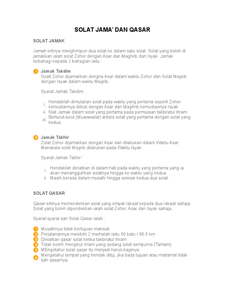 Uswatun Hasanah Apa Itu Jamak Dan Qasar Solat Jamak Ialah Mengimpunkan Dua Solat Dan Dilakukan Dalam Satu Waktu Contonya Solat Zohor Dengan Asar Jamak Terbahagi Kepada Dua Iaitu Jamak Taqdim Dan