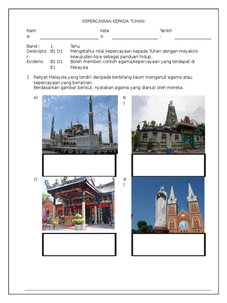 Panitia Pendidikan Moral Latihan 1 Nilai Kepercayaan Kepada Tuhan
