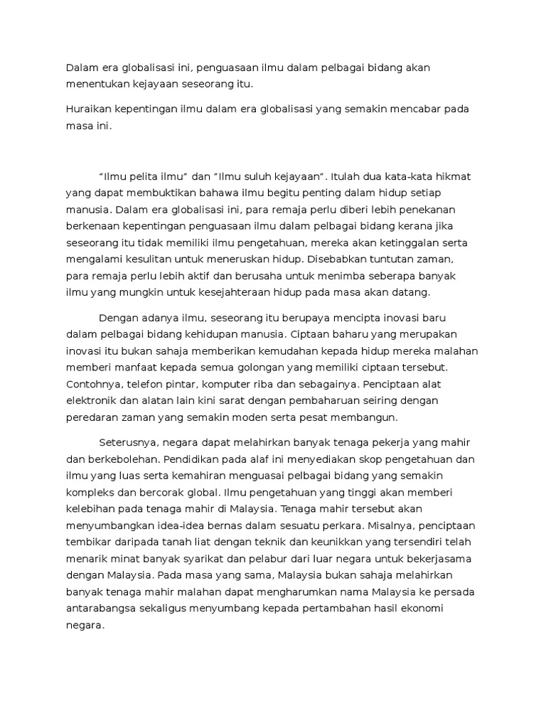 Kepentingan Ilmu Pada Era Globalisasi Ini