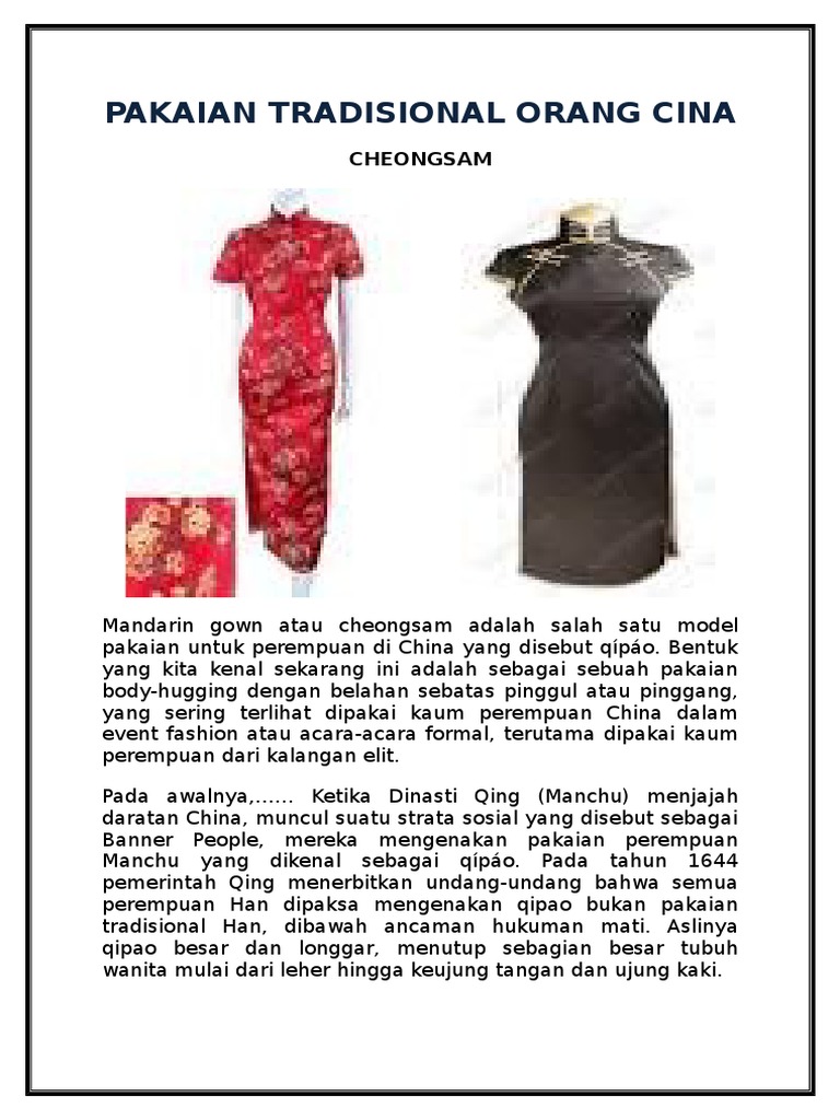 Warisan Tradisional Pakaian Tradisional Kaum Cina Samfoo Cheongsam